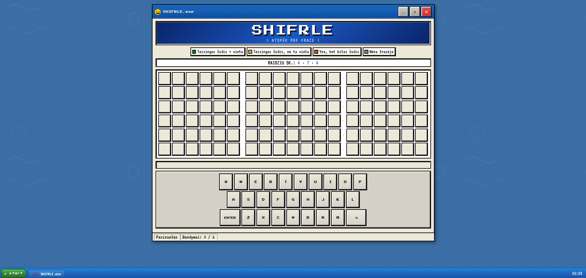Šifrle Kategorija: Žaidimai Tai yra PDF frazių šifrų žodlis Nuotraukos ‹ › Susiję straipsniai Šmulkintuvas Bongo Katinas Ruletė Šiūbuoklis Žolės Ūkis